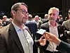 OBOS-sjef Daniel Siraj og Skanska-sjef Stein Ivar Hellestad snakket både om konkurransekraft, rekuttering, sykelønn og sykefravær under NHOs årskonferanse. Foto: Christian Aarhus