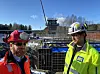 Kontrollingeniør Eirik Kittelsen i (til venstre) og anleggsleder Grzegorz Piechowski i PNC Norge var på Randselva bru 8. mars i år. Nå er mange av PNCs polske fagarbeidere koronafaste i hjemlandet.Foto: Statens vegvesen