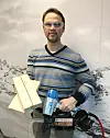 Produktsjef David Klingvall i Motek viser frem de nye trespikrene.Foto: Motek