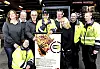 Øyvind Øksenvåg (midten) lovte å spise to gule klistrelapper med lim om de vant Afrika-turen. Tone Kvarsvik (fra venstre), Finn Albertsen, Bjørn Dahlen, Kåre Dyrseth, Britt Inger Bjerknes, Halvor Gården, Tonny Nilsen skal sørge for at kollegaen holder lovnaden.