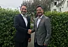 Administrerende direktør Knut Strand Jacobsen (t.vh) i Byggmakker Handel AS og daglig leder Øystein Kjellsen i Varme og Bad AS.