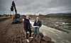 Her, på den 13 mål store tomten like ved E18 og den tidligere bomstasjonen i Lier, er byggingen av Kjellstad Næringspark nå i full gang. Utbyggerne Marius Vilhelmshaugen(t.v.) i Holtefjell Eiendom(t.v.) og Hakon Lærum i Kontorhuset kan blant annet tilby leietakerne en ny kontorhotell-løsning.Foto: Torbjørn Tandberg