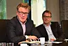 Kåre Malo (t.v.) klatrer nesten helt til topps i Saint-Gobain-systemet. Optimera-sjef Asbjørn Vennebo i bakgrunnen.
