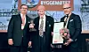 Carl Otto Løvenskiold og Gunnar Glavin Nybø delte ut prisen til Olav Thon på "Det Norske Byggemøtet" onsdag ettermiddag.