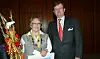 Styreleder i Norsk Byggtjeneste Carl Otto Løvenskiold overrekte prisen og blomstene til NOBB-ansvarlig Gro Myrvoll i Moelven Wood.