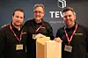 Dag Fjeld Edvardsen, Einar Gudmundsson og Håvard Brekke Bell i Catenda var svært godt fornøyd med at kronprinsen la turen innom deres stand på Byggedagene. Foto: Svanhild Blakstad