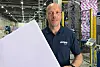 Jan Erik Engebretsen viser fram Jackofoam-plate fra det nye produksjonsanlegget i Fredrikstad.