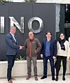 Administrerende direktør Terje Bøe i Spilka Building Solutions (fra venstre) med Juan Francisco Rodríguez García, Truls Moberge og Beatriz Quintana Villar i Cosentino. Foto: Spilka