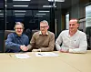 Daglig leder i Consto Eide Jørn Bogen (f.v.), konserndirektør Øystein Klungland i Slevaag Bolig og prosjektleder i Selvaag Bolig Christoffer Martinsen.
