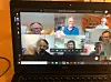 Bjørn Laksforsmo (nederst til venstre) og Lars Reitan (midten øverst) med digitalt håndtrykk etter at kontrakten var signert.