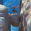 Far og sønn på Kjerag i 2016. Bilder fra Kjerag ble inngangen på Spectacular Norway. Foto: Privat