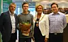 Fra venstre: daglig leder Atle Sylvarnes i Backer AS, lærling Bernt-André Skulstad, ordfører Trude Drevland og opplæringskonsulent Karl Strømsnæs i Byggopp Hordaland.