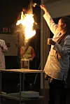 Under finalen presenterte også naturfaglærerne ved Kuben et bang-foredrag, med mye visuell fysikk-moro.Foto: Omsorgsbygg