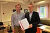Daglig leder Odd-Egil Reinås i Bioenergy (til venstre) og Thorbjørn Thoresen, direktør i Forsvarsbygg.