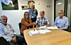 Energiavtale signert for nye Evenes flystasjon og Harstad/Narvik lufthavn Evenes. Fv: Prosjektdirektør Olaf Dobloug, avdelingsdirektør Marit Kristiansen og prosjektsjef Bjørnar Bendiksen i , og prosjektansvarlig Jan Topstad og Sofus Gedde-Dahl, påtroppende daglig leder i Norsk Bioenergi AS.