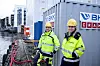 Batterikontainer ved Kranen sameie, Damsgårdssundet. Prosjektutvikler Kjetil Strand Solheim og prosjektleder Camilla Moster i BKKFoto: Odd Mehus, BKK