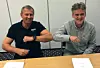 Geir Olav Uppstad ( Infra) t.v., og Rune Kiperberg (Mørenett), signerer kontrakten.