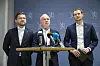 Klima- og miljøminister Sveinung Rotevatn (Venstre, fra venstre), finansminister Jan Tore Sanner (H) og barne- og familieminister Kjell Ingolf Ropstad (KrF) informerer om Norges forsterkede klimamål for 2030.