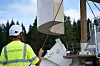 Modvion har overlevert verdens første fullskala vindkrafttårn i tre. Her fra byggingen i Skara i Sverige. Foto: Paul Wennerholm/Modvion