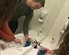 Bachelorstudentene Stine Bjønnes, Lars Grytten og Celine Stofer ved OsloMet ser på sluttbruk av varmtvann i Stovnerskogen sykehjem.