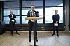 Riksmekler Mats Wilhelm Ruland (i midten) sier forhandlingene mellom NHO og LO løsnet først på formiddagen søndag. Her presenterer han enigheten sammen med NHO-leder Ole Erik Almlid (t.v.) og LO-leder Peggy Hessen Følsvik (t.h.) på Thon Hotel Opera i Oslo søndag.