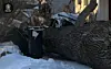 Enormt tre veltet over parkert bil og to boliger i Moss