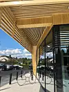 I tillegg til å være mer miljøvennlig enn tradisjonelle tak gjør Kielstegtakets lange spennvidde at butikken blir tilnærmet søylefri. På taket er det lagt sedum, som vil binde CO2 i hele sin levetid.