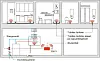 Installasjon med flere trådløse fuktfølere for varsling og avstenging av vanntilførselen. Illustrasjon: Byggforskserien, SINTEF Byggforsk