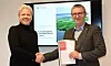 Dagleg leiar i Byggmester Strand AS, Tore Strand og direktør i Forsvarsbygg, Thorbjørn Thoresen, signerer kontrakten.