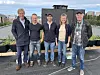 Peder Grimstad fra Rooftop (fra venstre), Michel Wolfstirn fra SquareRoot, Joakim Mjelde Winum og Egle Juodziukynaite fra Tiny Workers og prosjektleder Magnus Johan Evje fra Oslobygg. Foto: Oslobygg KF