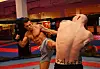 Treningskamerat Greger Lund får kjørt seg når han går inn i buret med Aron Jahnsen.