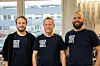 Rune Kirkenær var positiv til forespørselen fra Husqvarna om å ha en helse- og verktøysjekk i butikken. F.v. Marius Kirkenær, selger hos Skogredskaper, Rune Kirkenær, eier av Skogredskaper og Ken André Boland, selger. Foto: Malin S. Strandberg