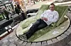 HAGEMESSE: Anleggsgartner Tore D. Carlsen fra Maskin og Utemiljø viste frem sin egendesignede, roterende solseng for publikum på Hagemessen.. Foto: Svanhild Blakstad