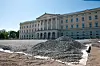 Høsten 2013 fikk Slottsplassen nytt dekke, etter årelange problemer med rennende grus i regnvær. Rehabiliteringen av Slottsplassen ble gjennomført av Statsbygg i samarbeid med Hoffet, Riksantikvaren og Oslo kommune. Generalentreprenør var Steen og Lund Anleggsgartnerfirma. Landskapsarkitekt: Link Arkitektur AS, avd. landskap Foto: Trond Joelson