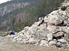 Etter hver sprenging er fjellet undersøkt av geolog for å se om det er nødvendig å sprenge mer, eller om fjellet er godt nok sikret, slik at arbeidet med å frakte bort masser kan begynne.