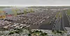 Havnedesignet viser hvordan en stor containerhavn med jernbane og de andre havnefunksjonene kan plasseres i Høybukta vest. Illustrasjon: Multiconsult.