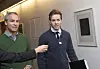 De parlamentariske lederne på borgerlig side møttes søndag kveld til nye budsjettdrøftelser. Hans Olav Syversen og Knut Arild Hareide fra KrF på vei inn til forhandlingene.