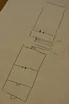 Ida finner fram papiret, hvor hun tegnet brakkeriggen. Hun tegner en sirkel og viser hvordan de stod.