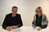 Direktør Eli Grimsby i KID signerte kontrakten med administrerende direktør Tor Unneland i Varden Entreprenør om å bygge Oslo skatehall. Foto: Kultur- og idrettsbygg Oslo KF
