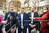 Den nå kansellerte avtalen ble offentliggjort under den tyske visestatsministerens Robert Habeck norgesbesøk. Her er han på besøk hos hydrogenselskapet NEL på Herøya. Olje- og energiminister Terje Aasland og næringsminister Jan Christian Vestre var også til stede. Foto: Ole Berg-Rusten / NTB