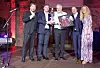 Konferansier Bjarne Brøndbo, teknisk kjedeansvarlig Thor Tveitan i Takringen, daglig leder Narve Johansen i Tak-Partner AS, daglig leder i Takringen Vidar Hoseth og logistikksjef Marianne G. Hoel i Takringen.