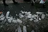 Kvinnen ble sendt til legevakten med lettere skader da hun fikk en isklump i hodet i Brugata i Oslo mandag ettermiddag, og et par biler har også fått unngjelde.