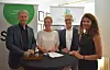 J.B. Ugland Eiendom signerte strakstiltakene etter debatt om bokvalitet i Arendal, der b.a miljøministeren deltok. F.v. Ola Elvestuen, Jill Akselsen (J.B. Ugland Eiendom) Thor Olaf Askjer (Norsk Eiendom) og Katharina Bramslev (Grønn Byggallianse).