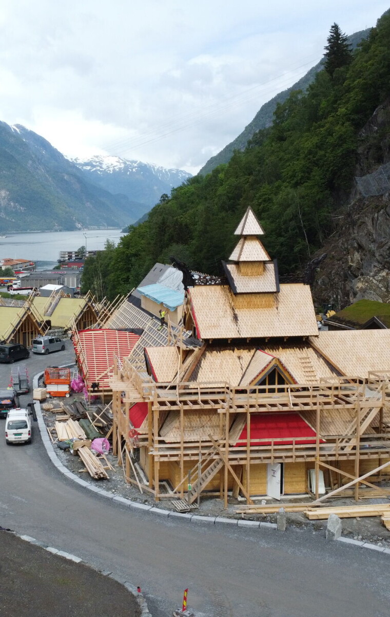 Camp Lothe bygges ut med nye vikinghytter, langhus og stavkirke i Odda.