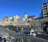 Vegvesenet skal kjøre ut 150.000 tonn steinmasser i arbeidet med å senke Hammersborgtunnelen under regjeringskvartalet i Oslo sentrum. Svartskiferen kjøres ut med elektriske semitrailere. Nå blir det krav om at massetransporten i vegprosjektene til Vegvesenet blir uten utslipp av CO2. Foto: Per Kollstad/Statens vegvesen
