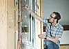 Steinar Grynning monterer sensorer på et vindu med integrert solskjerming før det skal prøves i SINTEF Byggforsks lab. Grynning skal snakke om fremtidens vinduer og fasader på bygningsfysikkdagen.