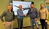 Prosjektleder Gerard Zuidhoek i HRS (fra venstre), administrerende direktør Eirik Johansen i HRS, distriktssjef Trygve Nilsen i Peab Bygg og prosjektsjef Anders Stien i Peab Bygg signerte for ny miljøstasjon. Foto: Peab