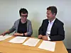 Fylkesrådmann Evy-Anni Evensen i Telemark fylkeskommune og Even Larsen, distriktssjef for Skanska i Porsgrunn.