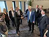 Administrerende direktør Ståle Rød i Skanska og administrerende direktør Lars Henrik Bøhler i Omsorgsbygg tar hverandre i hånda etter at kontrakten for gjennomføringsfasen for Oslo storbylegevakt var signert.