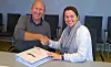 Fra kontraktssignering, f.v.: Jon Harald Kristiansen, daglig leder i Betonmast Østfold, og Jannecke Wold, eiendomssjef i Vestby kommune.